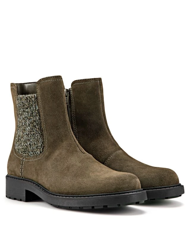 | Material: suede Insole: leather Outsole: rubber Lining: textile Side zipper Shaft height: 5.75 in. Shaft circumference: 9 in. |
